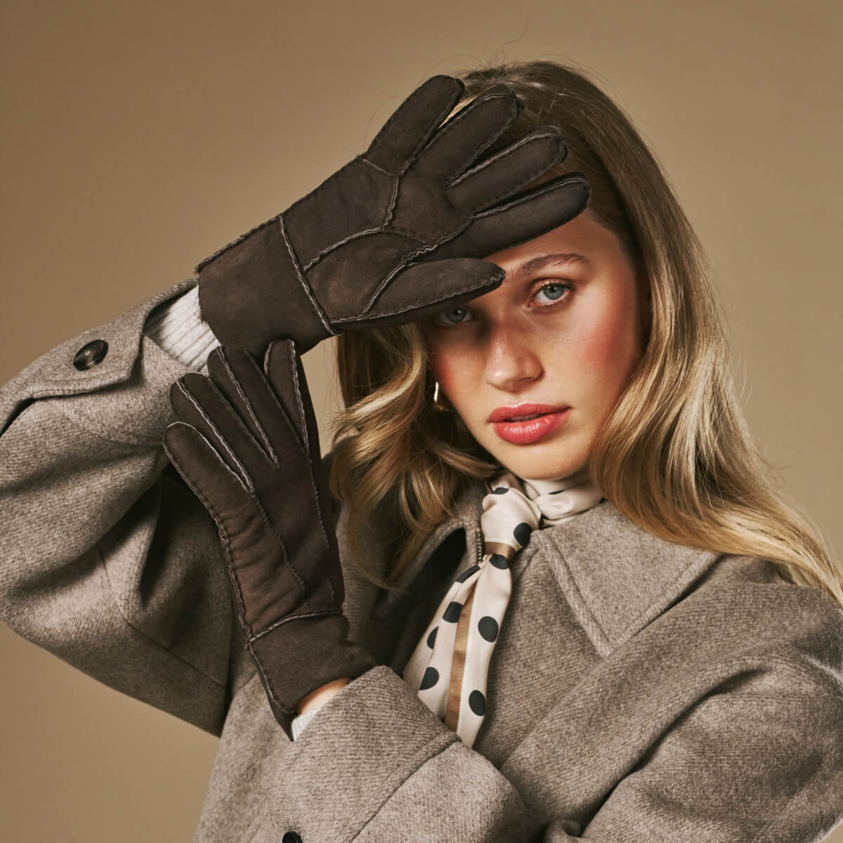 Roxanne (braun) - Damen-Patchwork-Schafsfellhandschuhe mit warmem Schafspelzfutter