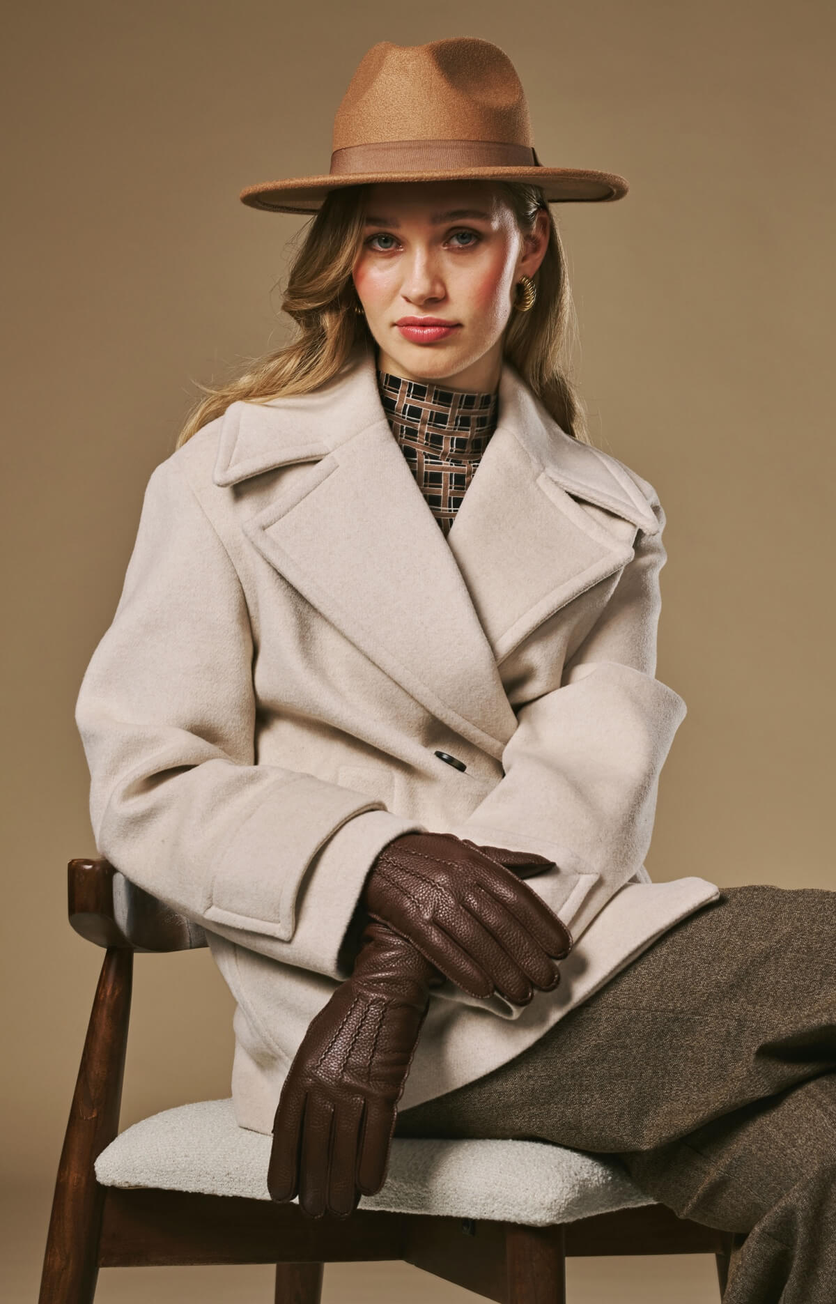 Sienna (braun) - luxuriöse Handschuhe aus amerikanischem Hirschleder mit reinem Kaschmirfutter
