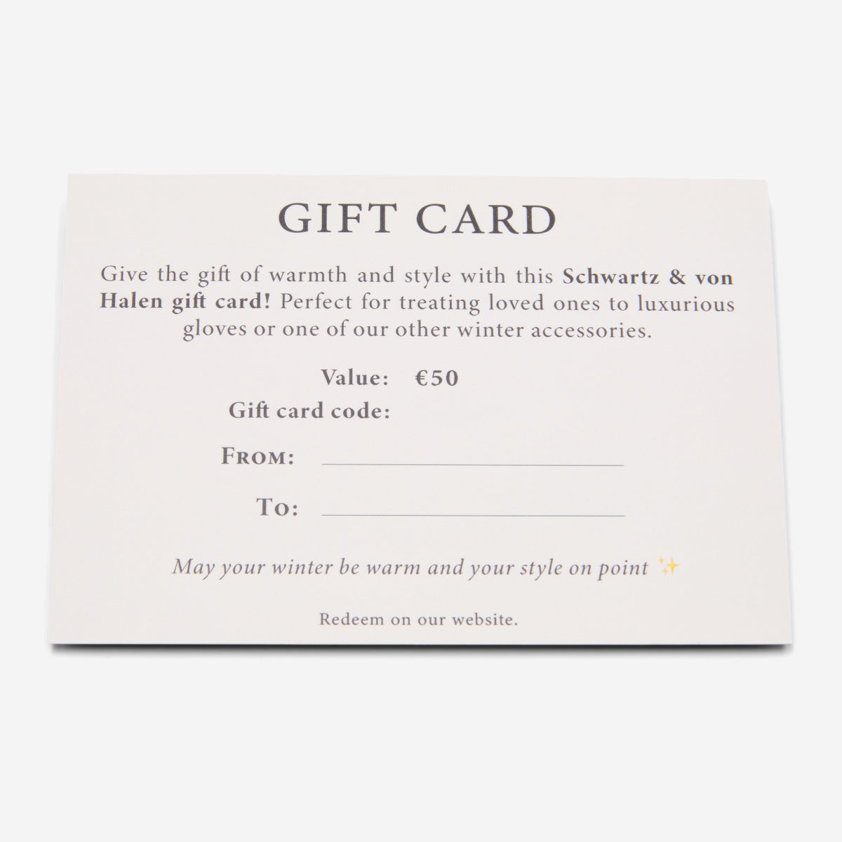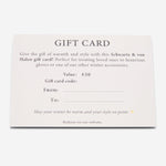 Auf der Suche nach einem passenden Geschenk für die Feiertage? Mit der Schwartz & von Halen Geschenkkarte kann sich Ihre Liebste oder Ihr Liebster selbst ein Paar luxuriöse Lederhandschuhe aussuchen – oder eines unserer anderen eleganten Winteraccessoires. Ein perfektes Geschenk für Nikolaus oder unter den Weihnachtsbaum.