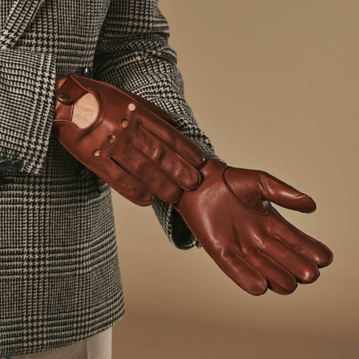 Gosling (cognac) - klassischer Lammleder-Autohandschuhe mit Touchscreen-Funktion