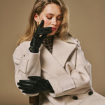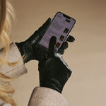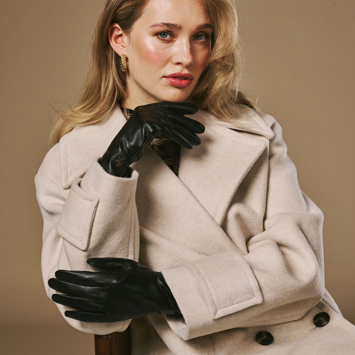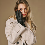 Lauren (schwarz) - Damen-Lammfellhandschuhe mit Seidenfutter und Touchscreen-Funktion