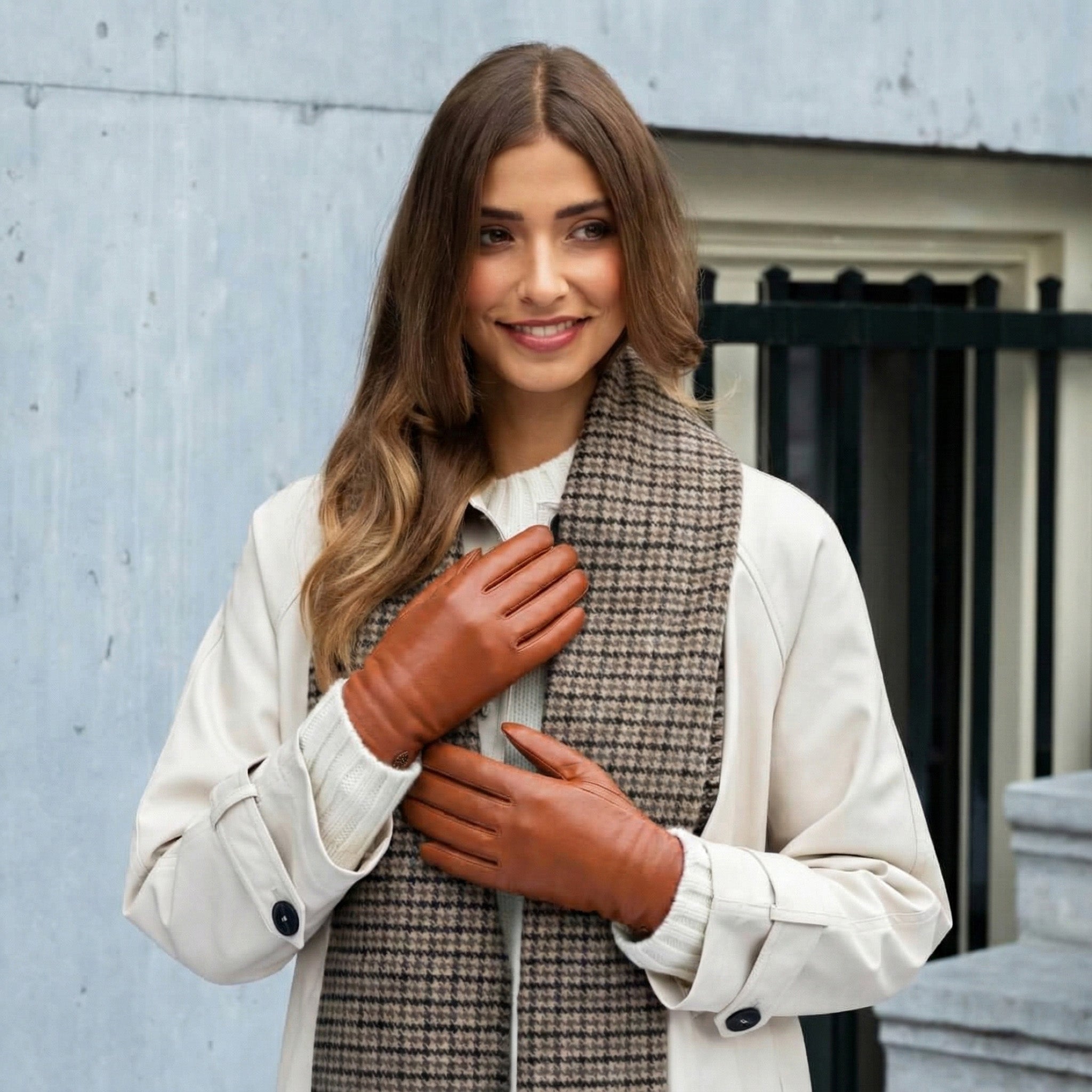 Ivy (cognac) - Handschuhe aus Schafsleder mit Woll-/Kaschmirfutter und Touchscreen-Funktion