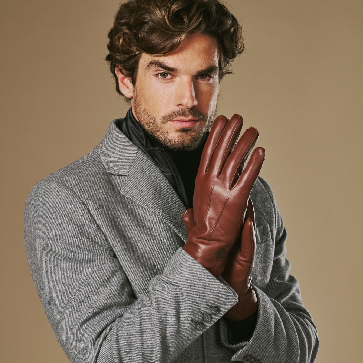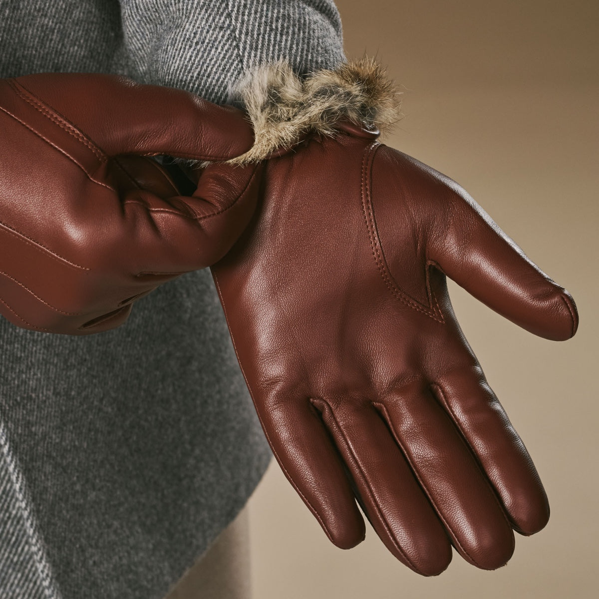 Alexander (braun) - Herrenhandschuhe aus Lammleder mit luxuriösem Kaninchenfellfutter und Touchscreen-Funktion