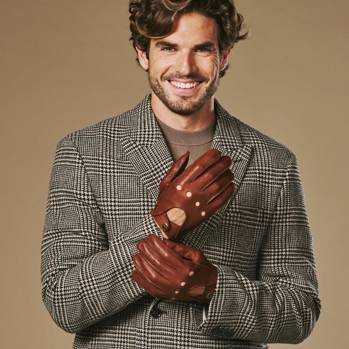 Gosling (cognac) - klassischer Lammleder-Autohandschuhe mit Touchscreen-Funktion
