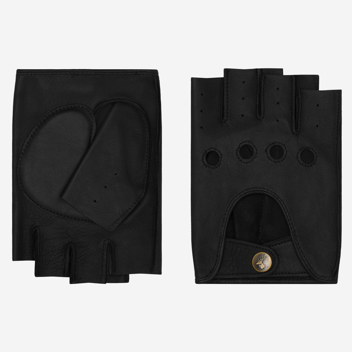 Liam (schwarz) – klassische fingerlose Herren-Autohandschuhe aus Lammleder